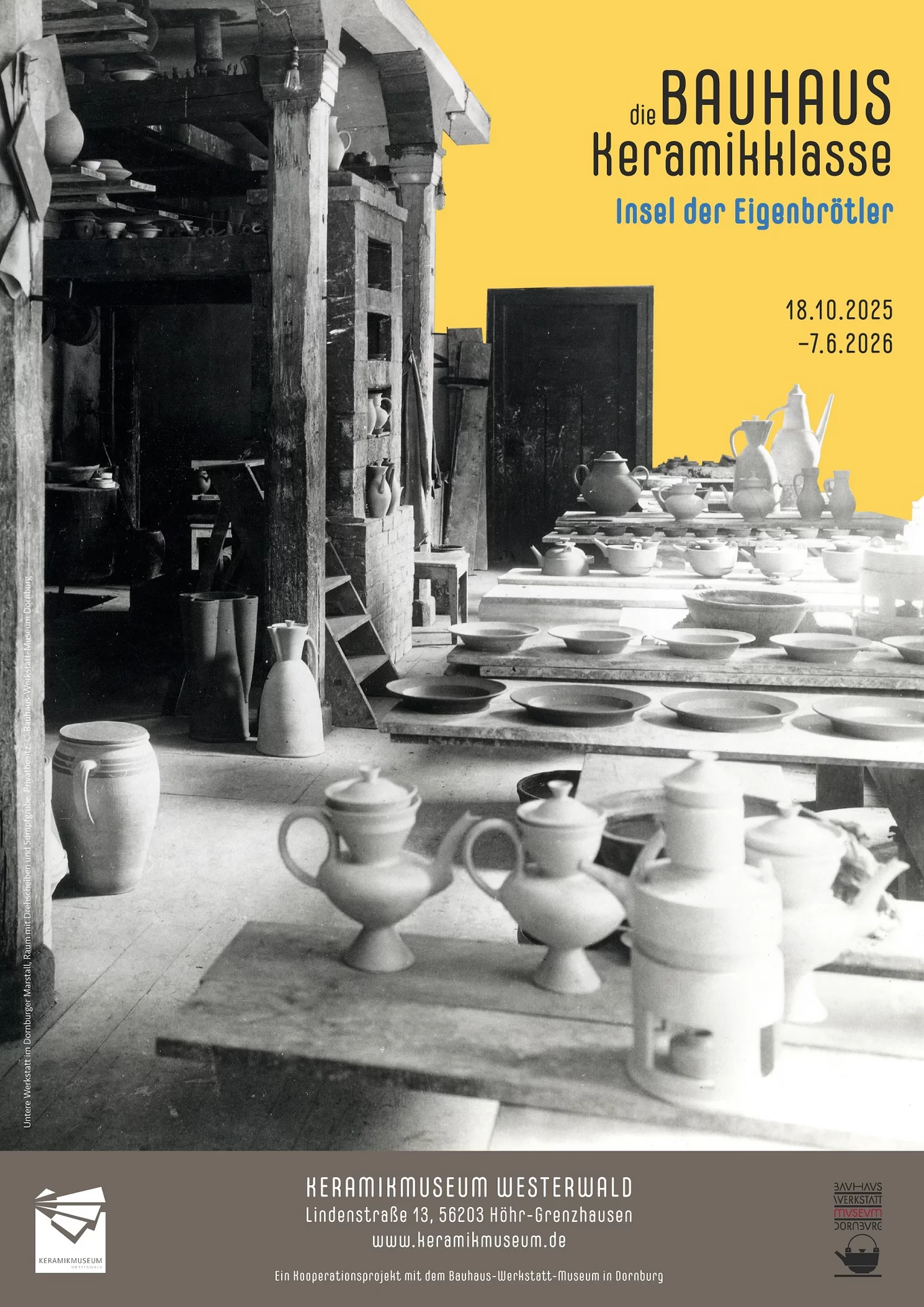 Diese Ausstellung erinnert an die besondere Keramikklasse des Bauhauses. Zugleich vermittelt sie einen Eindruck von der keramischen Lehre seinerzeit und stellt auch die bisher unbekannten Beziehungen zur Keramischen Fachschule in Höhr dar.