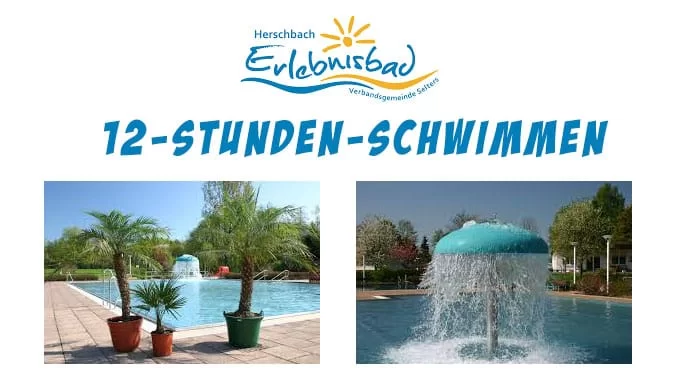 Am 03.09.2022 von 10.00 Uhr - 22.00 Uhr veranstaltet das Erlebnis-Bad in Herschbach/UWw. ein 12-Stunden-Schwimmen.