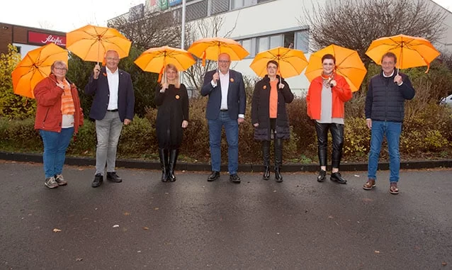 Westerwälder Landräte und Gleichstellungsbeauftragte der Landkreise Altenkirchen, Neuwied und Westerwald beteiligten sich am Internationalen Tag „Gewalt gegen Frauen“ an der Aktion „Orange Westerwald“ mit einem deutlichen Zeichen der Solidarität. Der 25. November ist seit vielen Jahren weltweit der Tag „Gewalt gegen Frauen“. Seine Wichtigkeit wird seit letztem Jahr auch im Westerwald mit dem Beleuchten von Denkmälern und Gebäuden in Orange unterstrichen. Der Förderturm in Willroth und der Köppel in Ransbach-Baumbach machten zusammen mit weiteren Gebäuden in der Region den Anfang.