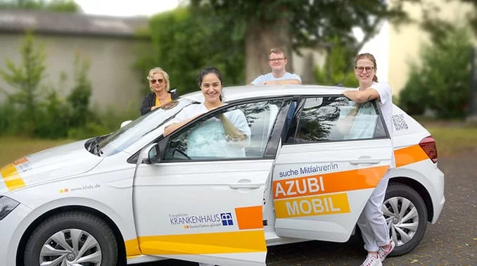 Praktische und handfeste Unterstützung erhalten die Auszubildende des Evang. Krankenhauses Dierdorf/Selters (KHDS) in vielfältiger Weise. Neben der umfassenden und individuellen Vermittlung der Lerninhalte sind weitere, sinnvolle Benefits Bestandteil des innovativen Ausbildungskonzepts. Beispielsweise steht für Dienstfahrten ein Dienstwagen zur Verfügung, liebevoll auch „Azubi-Mobil" genannt. Jüngst wurde ein neues Modell in Betrieb genommen. Dieses kann beispielsweise für Fahrten zur Berufsschule zur BILDUNGSWERKstadt, der Akademie für Gesundheitsfachberufe in Limburg genutzt werden.
