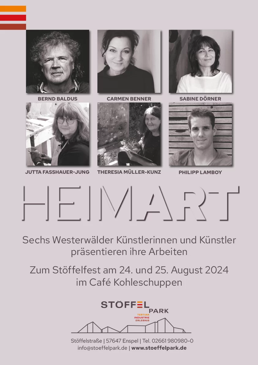 Die Ausstellung stieß auf großes Interesse, auch der Teamgeist der Kunstschaffenden war toll. Daher werden Bernd Baldus, Carmen Benner, Sabine Dörner, Jutta Fasshauer-Jung, Theresia Müller-Kunz sowie Philipp Lamboy am Stöffelfest 2024 die HEIMART wieder aufleben lassen.