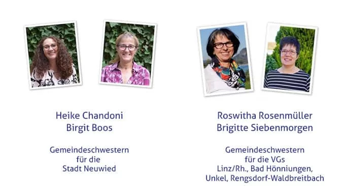Erreichbar sind Roswitha Rosenmüller und Brigitte Siebenmorgen (zuständig für die Verbandsgemeinden Linz, Bad Hönningen, Unkel und Rengsdorf-Waldbreitbach) unter der Telefonnummer: 02644 / 406 33 00. Ihre Kolleginnen in Neuwied, Birgit Boos und Heike Chandoni, sind telefonisch unter der 02631 / 939 11 31 zu erreichen.