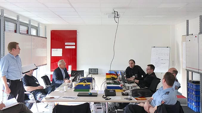 Lagebesprechung der Technischen Einsatzleitung in Neuwied