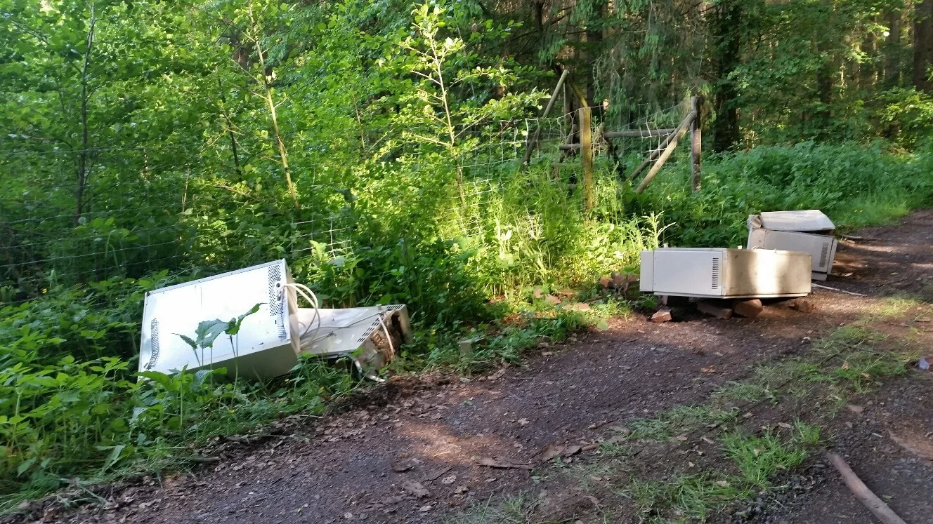 Im Bereich der Gemarkung Dreikirchen, im Gemeindewald Dreikirchen, wurden illegal vier asbesthaltige Nachtspeicheröfen abgelagert.