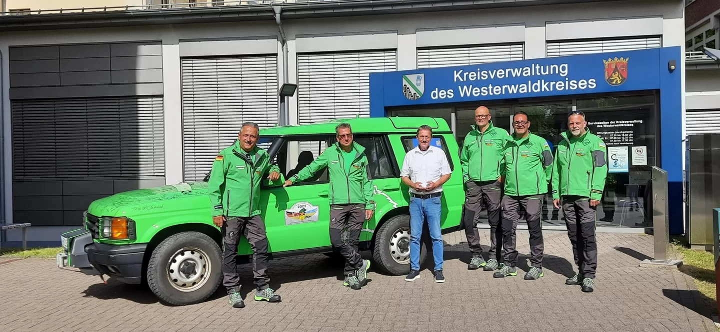 Die „Hachenburger Frischlinge“ verbinden ihre Ausflüge in die weite Welt immer mit dem Engagement für einen guten Zweck. Umso erfreuter war der Landrat, als die „Frischlinge“ ihm mitteilten, dass mit der Hachenburg-Kapstadt-Kigali-Ralley die nächste große Tour ansteht. Die Teammitglieder Lars Hümmeler, Markus Grodtmann, Bernd Hilz, Bruno Meder und Stefan Andres berichteten, dass die „Frischlinge“ diesmal für einen dringend benötigten Erweiterungsbau für das „Gakoma Health Centre“ im Bezirk Gisagara/Ruanda fahren. Die Autos kommen im Anschluss am Zielort caritativen Zwecken zugute. Landrat Achim Schwickert zeigte sich sehr beeindruckt und stolz vom Engagement der ralleyerprobten Westerwälder. Er verabschiedete sich mit den besten Wünschen für eine erfolgreiche Rallye: „Gute Fahrt und kommt mir gesund zurück in die Heimat!“