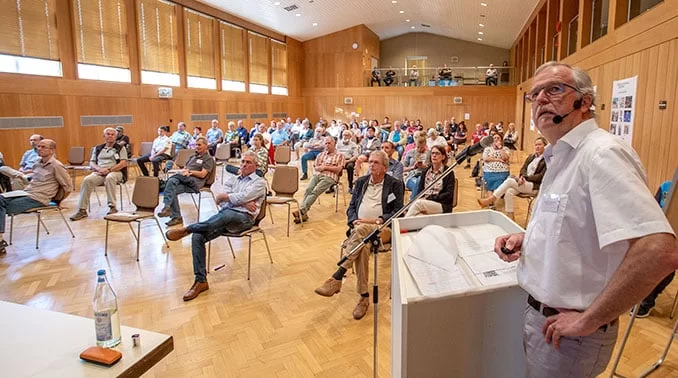Als Gastredner sprach Dr. Hans Hoorn, er ist europaweit aktiver Stadtsoziologe und Stadtplaner und beispielsweise verantwortlich für die sehr erfolgreiche Stadtentwicklung in Maastricht. Kurzweilig machte er klar: „Eine Stadt braucht Ordnung, Hinweise aber auch ein bisschen Chaos.“ In seiner langen Erfahrung hat er 25 Punkte ausgemacht, die ein Stadtentwicklung erfolgreich werden lassen. Er nennt sie die „Zauberformel“. Eine davon sei, dass eine Stadt einen Masterplan brauche, eine Vision, die nur von den Bewohnern formuliert werden könne, denn die wüssten 24 Stunden am Tag, was stark und was schwach im eigenen Wohnort sei. Diese Visionen gelte es mit Tatkraft umzusetzen. Dazu sei eine visionäre politische Leitung mit Rückgrat nötig. Weiter hält es Hoorn für wichtig, die Identität von Selters zu finden und zu formulieren und mit privaten Investoren zusammenzuarbeiten. Zur fantasievollen Umsetzung von Ideen und mit dem Blick auf schlechte und gute Beispiele aus anderen Städten sagte der Stadtsoziologe: „Es gibt ein Recht auf Eleganz“. Ein Luftbild von Selters betrachtend fragte Hoorn: „Warum gibt es in Selters so wenig Bäume, so wenig Wasser und so wenig Solaranlagen?“
