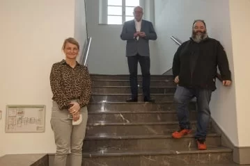 Sandra Köster, Vorständin des Regionalvermarktungsprojekts "Wir Westerwälder", das die drei Landkreise Altenkirchen, Neuwied und Westerwaldkreis umfasst, erläuterte bei einem Gespräch mit Landrat Dr. Peter Enders und Autor Micha Krämer die Funktion des Zusammenschlusses.