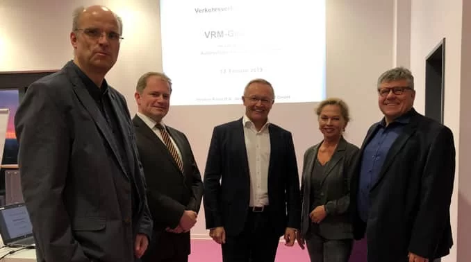 Michael Lehmann, Kreisverwaltung Cochem-Zell, Stephan Pauly, VRM-Geschäftsführer, Landrat Achim Hallerbach, Abteilungsleiterin Helga Zoltowski, Kreisverwaltung Neuwied, und 1.Kreisbeigeordneter Michael Mahlert.