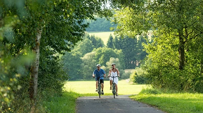 Mit dem E-Bike schafft man die Aufstiege dieser Radrundtour leichter. Doch man sollte oft rasten, denn es gibt einiges zu sehen. Auf der Hinfahrt radelt man durch Rheinland-Pfalz, auf der Rückfahrt durch Hessen. Das Eisenbahnmuseum am Startpunkt in Westerburg kann man sich für später aufheben, aber das Wasserschloss Neuroth in Bilkheim mit angrenzendem Hofgut ist eine wahre Augenweide und lohnt einen zweiten Blick. Im Renaissance-Schloss von Hadamar sollte man das Glasmuseum erkunden.