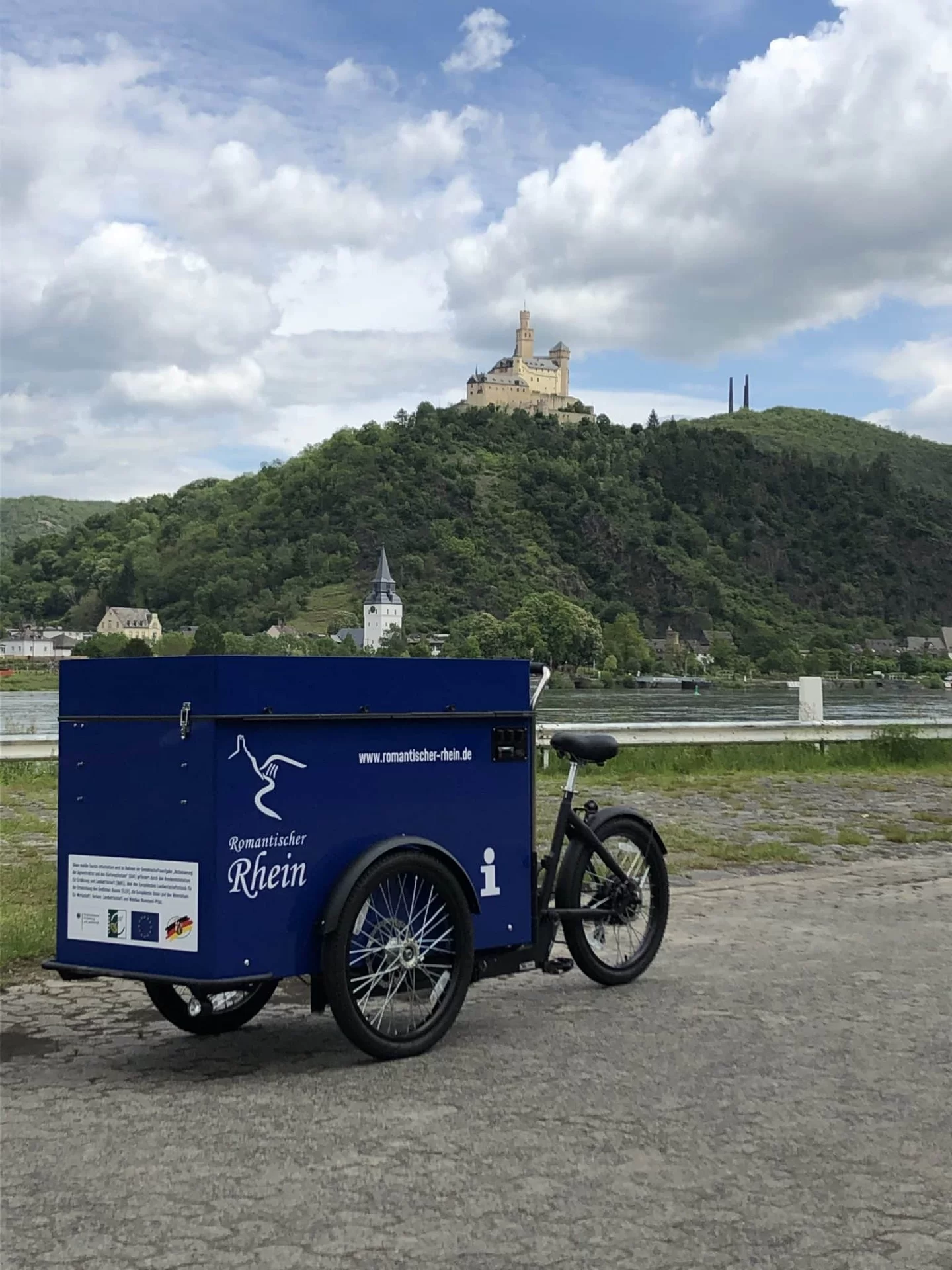 Als eine der zehn touristischen Regionalagenturen in Rheinland-Pfalz verantwortet die „Romantischer Rhein Tourismus GmbH“ unter anderem die übergeordnete touristische Vermarktung der Destination „Romantischer Rhein“, d.h. des Gebietes zwischen Bingen und Remagen linksrheinisch sowie Rüdesheim und Unkel rechtsrheinisch. Im Zuge der Aktion Rad-Roadshow „Romantischer Rhein vor Ort“ wird die „Romantischer Rhein Tourismus GmbH“ ihre übliche Geschäftsstelle in Koblenz in den nächsten Wochen und Monaten immer mal wieder verlassen und in der Region mit einer mobilen Tourist-Information unterwegs sein. Ein schickes Lasten-E-Bike, welches sich mit nur wenigen Handgriffen zu einer mobilen Tourist-Information umfunktionieren lässt, wird alle Blicke auf sich ziehen und als informative Anlaufstelle dienen. In Kooperation mit den jeweiligen lokalen Tourist-Informationen, wird die mobile Tourist-Information an verschiedenen Orten im Mittelrheintal Halt machen und für einige Stunden z.B. auf Wochenmärkten, am Rheinufer oder sonstigen zentralen Punkten zu finden sein. Mit im Gepäck ist unter anderem allerlei Wissenswertes zu Ausflugszielen in der gesamten Region, den beiden premium-zertifizierten Fernwanderwegen Rheinsteig und Rheinburgenweg, den Premiumrundwanderwegen im Rheintal sowie Tourenvorschläge für das Radfahren in der Region. Die mobile Tourist-Information ist gleichermaßen Anlaufstelle für Gäste in der Region wie für Bürgerinnen und Bürger, welche sich zu Ausflugszielen nahe der eigenen Heimat inspirieren lassen möchten. Zudem lädt die mobile Tourist-Information dazu ein, die Arbeit der „Romantischer Rhein Tourismus GmbH“ näher kennenzulernen und mit den Mitarbeiterinnen und Mitarbeitern vor Ort in den Austausch hierzu zu kommen. Los geht’s mit der „Rad-Roadshow“ am Samstag; 17.07.21 von 11.30 Uhr bis 15.00 Uhr am Kulturufer in Bingen. Die nächsten Termine folgen am: 23.07.21 auf dem Wochenmarkt in Oberwesel, am 03.08.2021 auf dem Wochenmarkt in St. Goar sowie am 06.08.21 in Boppard. Weitere Termine im August und September unter anderem in: Remagen, Linz, Bad Hönningen, Unkel, Andernach, Bad Breisig, Sinzig, Bendorf, Braubach sowie Koblenz sind derzeit in Vorbereitung. Aktuelle Informationen zu den Terminen werden jeweils über die Presse sowie die Social-Media-Kanäle der Romantischer Rhein Tourismus GmbH kommuniziert.