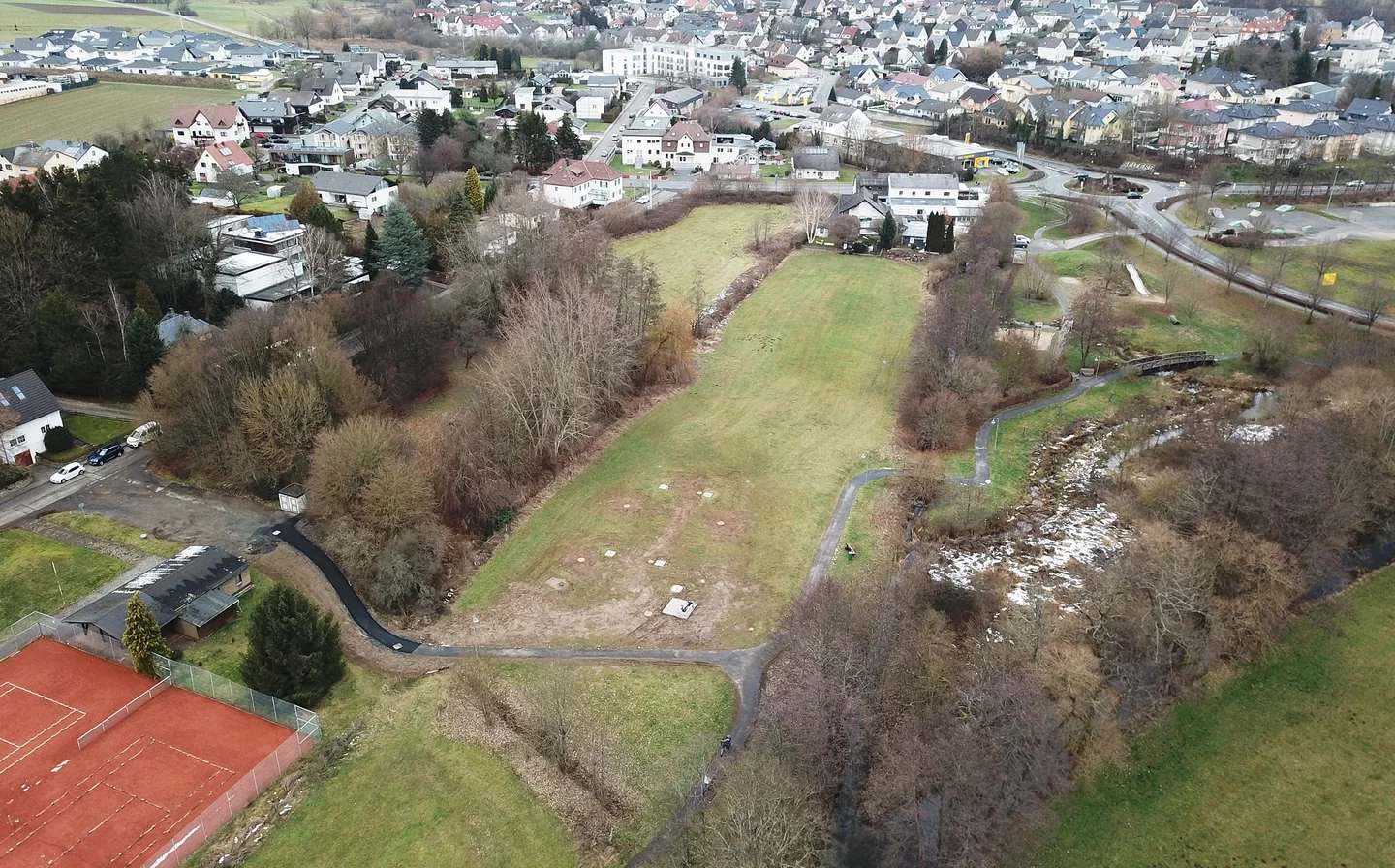 (Bildunterschrift: Landschaftspark. Reichlich Platz für einen Landschaftspark am Saynbach, meinen Teilnehmer der Gruppe „Freiraum, Plätze und Ökologie“ im Rahmen der Zukunftswerkstatt)