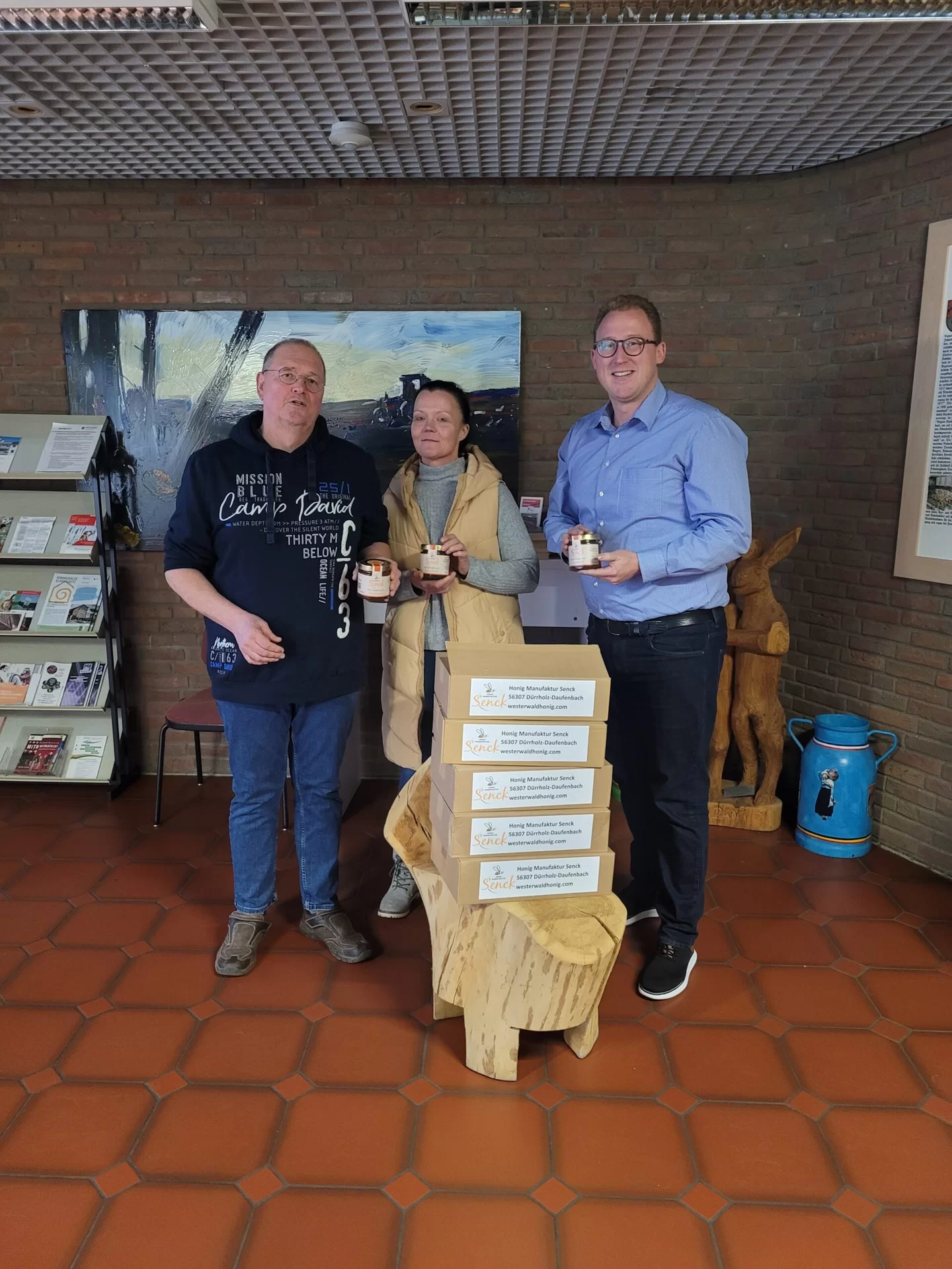 Puderbach. Die Besitzer der Honig Manufaktur Senck, Alexandra und Arne Senck, haben der Tafel Puderbach-Dierdorf eine Spende in Form von insgesamt 65 Gläsern Honig übergeben. Der Wert dieser Spende beläuft sich auf rund 520 Euro. Die Übergabe erfolgte an den Geschäftsführer der Tafel, Philipp Rasbach. Die Tafel zeigte sich erfreut über die Spende dieses hochwertigen Lebensmittels aus der Region. Der Geschäftsführer betonte, dass nun ihre Kunden davon profitieren würden. Es handele sich hierbei um eine willkommene Bereicherung des Angebots der Tafel, gerade zur Weihnachtszeit.