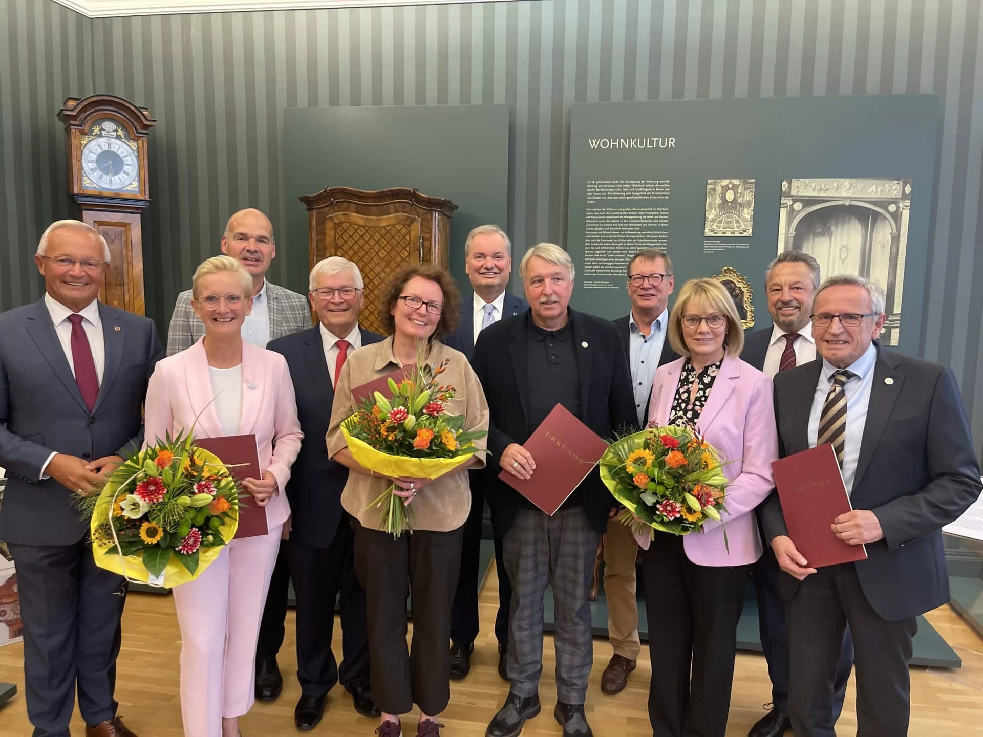 Den Glückwünschen an die vier Ausgezeichneten schlossen sich die Bürgermeister Hans-Werner Breithausen (Rengsdorf-Waldbreitbach), Karsten Fehr (Unkel), Stadtbürgermeister Gerhard Hausen (Unkel) sowie Ortsbürgermeister Martin Lerbs (Waldbreitbach) bei der kleinen Feierstunde im Neuwieder Roentgen-Museum mit herzlichen Worten an.