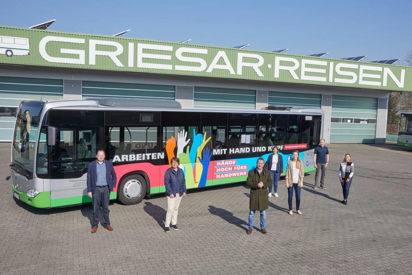 Auch Landrat Achim Schwickert zeigte sich begeistert: „Es ist wichtig, dass die Betriebe sichtbar sind und sich als potentielle Arbeitgeber zeigen, das können wir auf diesem Weg unterstützen. Diese Busse fallen auf und bleiben in Erinnerung“, ist er überzeugt.