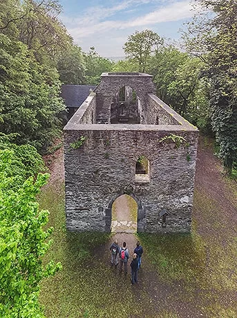 Schon am Ortsrand von Anhausen, einige Meter hinter dem Startpunkt, bekommt man den ersten Eindruck vom magischen Reiz dieser Mittelgebirgslandschaft. Ein toller Ausblick über die Höhenzüge stimmt auf die kommenden rund 21 km ein. Zunächst hinab ins wildwüchsige Steinebachtal, von hier aus führt ein wildromantischer Pfad am Hang des Iserkopfes hinauf, bis wenig später und völlig unerwartet die Kirchenruine Hausenborn mitten im Wald auftaucht. Ein außergewöhnlicher Ort. Steil hinab schwingt sich die Wäller Tour Iserbachschleife danach ins Saynbachtal, um wenig später den steilen Aufstieg zur erstmals im Jahr 1103 erwähnten Isenburg, dem Stammhaus der Isenburger, zu wagen. Hoch über dem eng gewundenen Tal thront die romanische Burgruine zusammen mit der Pfarrkirche St. Katharina, ein Aufstieg lohnt sich allein schon wegen des schönen Blickes ins Tal. Steil bergauf geht es weiter hinauf zu zwei luftigen Aussichtsfelsen, von denen sich die zweitälteste Burg im Landkreis Neuwied in jeweils neuer Perspektive präsentiert. Schattiger Wald begleitet diese Wäller Tour bis zur Thalhauser Mühle, die durstige und hungrige Wanderer nach fast halber Strecke zur gemütlichen Einkehr lädt. Das Waldhotel ist der Auftakt für einen stetig leichten Anstieg hinauf nach Rüscheid. Vorbei am Veltens Weiher, der sich ebenfalls dank eines idyllischen Rastplatzes für eine Verschnaufpause anbietet, erreicht die Rundwanderung die Höhenlagen von Rüscheid. Von hier aus kann man wunderbar den Blick über den Forst Wied hinweg in die Weite des Westerwaldes schweifen lassen. Von Rüscheid aus, vorbei am Himmelsteich von Rüscheid, einem sehenswerten Amphibienteich, umgibt den Wanderer eine sattgrüne Wiesen- und Feldlandschaft. Auf und ab über das quicke Relief geht’s zurück nach Anhausen.