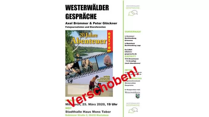 Nun teilt das Moderations- und Organisationsteam, Jenny Groß und Dominic Bastian mit: „Die Veranstaltung der „Westerwälder Gespräche“ am 25. März wird verschoben.“ Angesichts der sich dynamisch entwickelten Ausbreitung von Coronaviruserkrankungen habe man sich darauf verständigt, den Termin auf den 06. Oktober zu verlegen. „Natürlich ist es sehr bedauerlich und schade, aber in der aktuellen Situation sicherlich verständlich.“ sind sich Groß und Bastian einig.