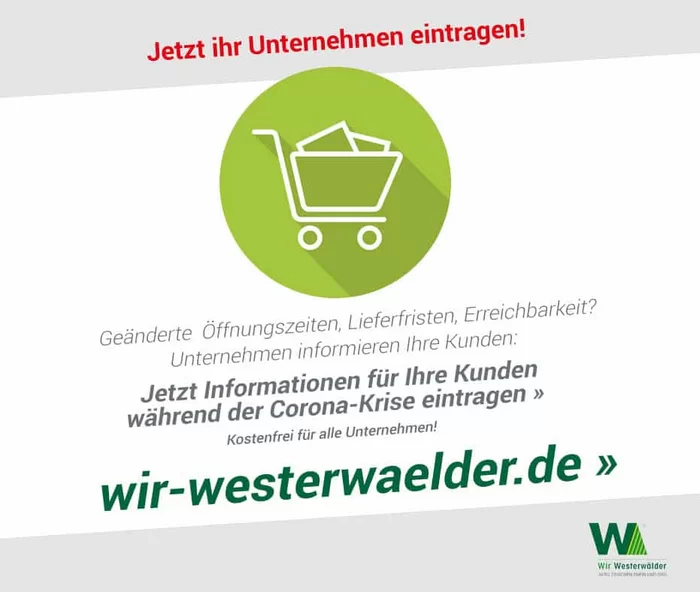Die Gemeinschaftsinitiative „Wir Westerwälder“ bietet mit ihrem Service Unternehmen der Region die Möglichkeit Auskunft zu geben, wie zum Beispiel die Zustellung von Produkten oder anderen Serviceleistungen. Auch Öffnungszeiten und andere Informationen können eingestellt werden.
