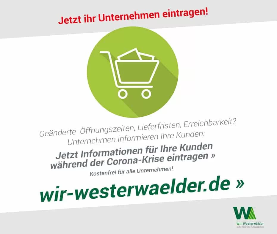 Als Reaktion auf die Corona-Krise und die damit verbundenen Einschränkungen ist ein neuer Service entstanden. Auf www.wir-westerwaelder.de können heimische Unternehmen aus den drei kooperierenden Landkreisen aktuelle Informationen rund um ihr Unternehmen und ihre Dienstleistungen in der aktuellen Situation für die Bürgerinnen und Bürger veröffentlichen