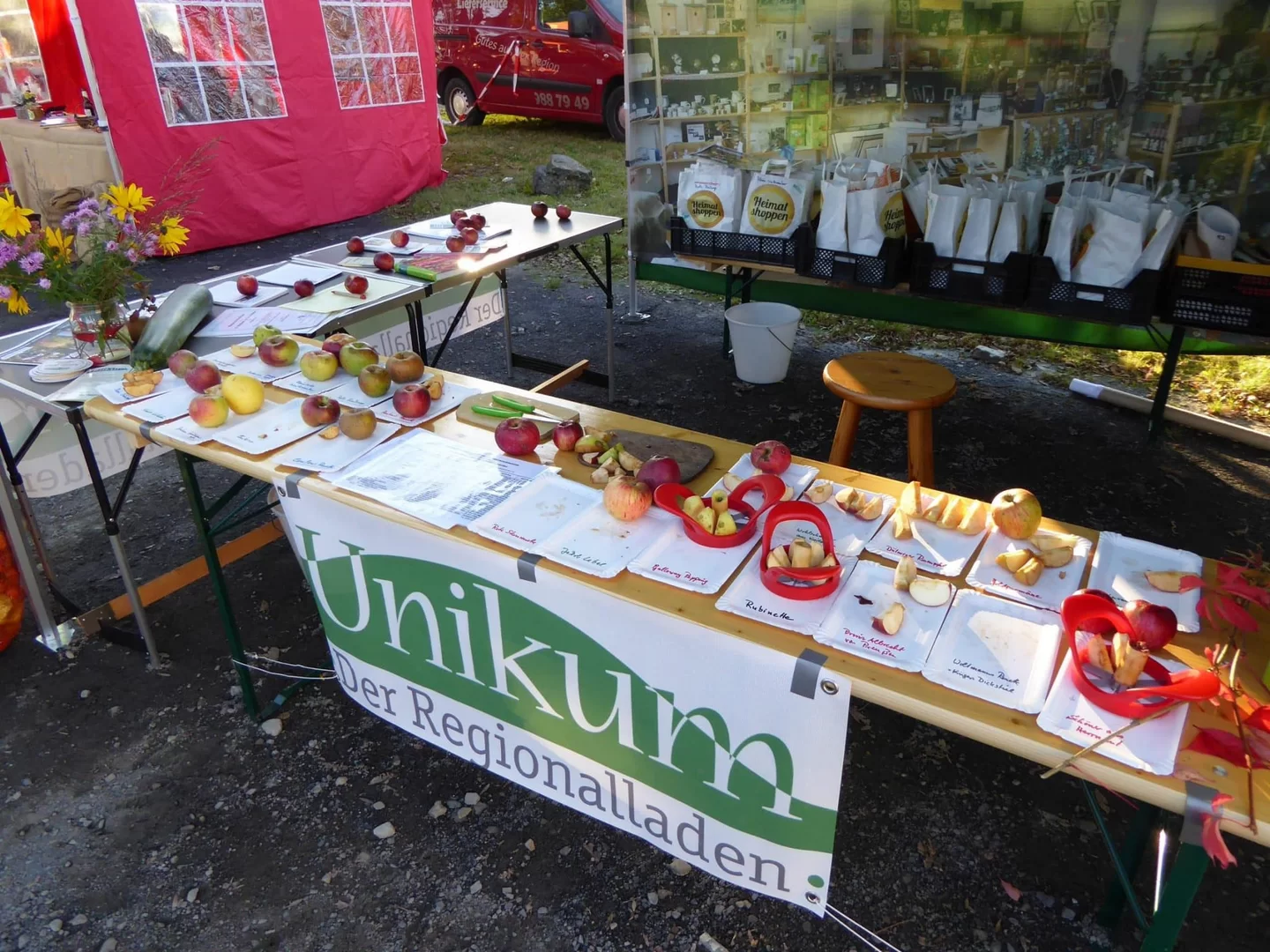 Es gibt über 50 Apfelsorten, die in unserer Region Westerwald gut gedeihen. Beim tollen Regionalmarkt in Flammersfeld können Sie eine Auswahl der besten 25 Apfelsorten verkosten + ihre Nutzungs- und Geschmacksvielfalt kennenlernen. Dazu gibt's Infos zum Regionalladen UNIKUM in AK einfach kommen.