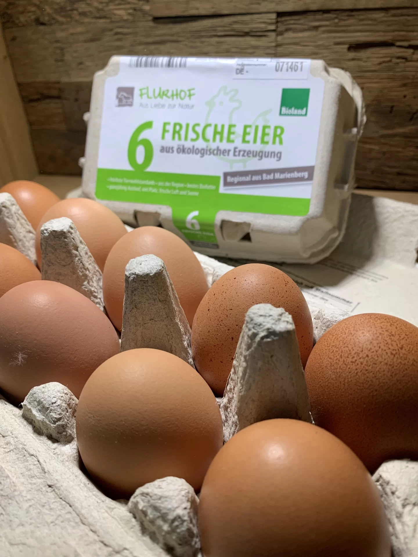 Eier, Rindfleisch und -wurst, Hühnerbrühe, Hühnerfrikassee, Rinderfond und Rinderbrühe, Gemüse aus eigenem Anbau, Suppenhühner, Apfelsaft, Bio-Nudeln.