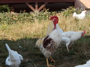 Eier von glücklichen, freilaufenden Hühnern, Suppenhühner, Hähnchen,