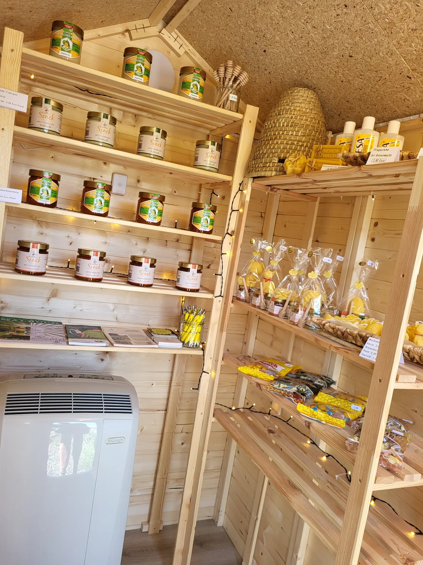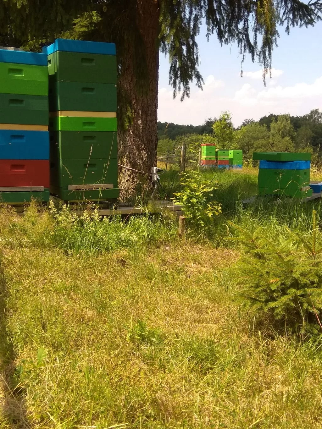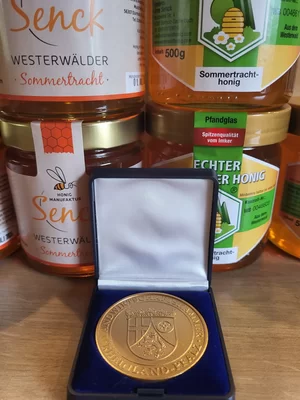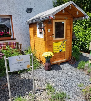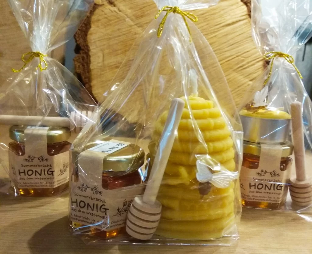 Wir betreiben eine Standimkerei im schönen Westerwald, unsere Bienenvölker stehen ganzjährig auf unserem großen, naturbelassenen Gelände. Bei uns weiden Kühe, auf der Koppel grasen Pferde und der Wald ist nur einen Katzensprung weit entfernt. Idyllisches Landleben im Einklang mit der Natur, so sollte es sein! Das bedeutet: Regionaler, naturbelassener Honig aus unserer schönen, intakten Landschaft. Honig aus Leidenschaft! Honig, Kerzen, kleine Geschenke, Salben, Lippenpflege gibt es von 6 bis 21 Uhr in unserem Honey Drive In. Etwas Kleingeld mitbringen und Honig oder kleine Gastgeschenke für Besuche mitnehmen. Unsere eigenen Gläser als auch die vom Deutschen Imkerbund sind Pfandgläser, sie zahlen und erhalten bei der Rückgabe 50ct Pfand. Um die Ecke ist der Dürrholzer Naturerlebnispfad, also eine gute Gelegenheit sich mit Kind und Kegel anschliesend etwas an der frischen Luft zu bewegen:-)