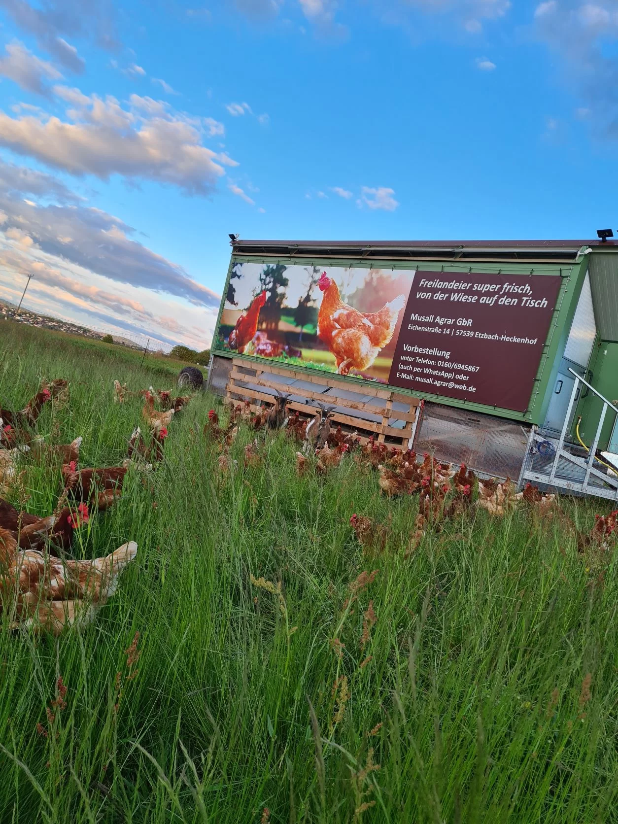 Im Jahr 2013 fing alles mit zwei Rindern und ein paar Hühnern an. Aus diesem Hobby entstand im Jahr 2020 eine GbR mit einer Limousin Mutterkuhherde, einem Hühnermobil und einer eigenen Imkerei. Weiterhin halten wir Duroc Schweine und in den Sommermonaten Mastgeflügel wie Hähnchen und Puten. Artgerechte Haltung steht für uns an erster Stelle, um unseren Kunden mit gutem Gewissen qualitativ hochwertige Produkte aus der Heimat anzubieten. Hofverkauf Die Fleischprodukte gibt es auf Vorbestellung. Telefonisch, per Mail und über WhatsApp. Verkaufsautomat 24/7