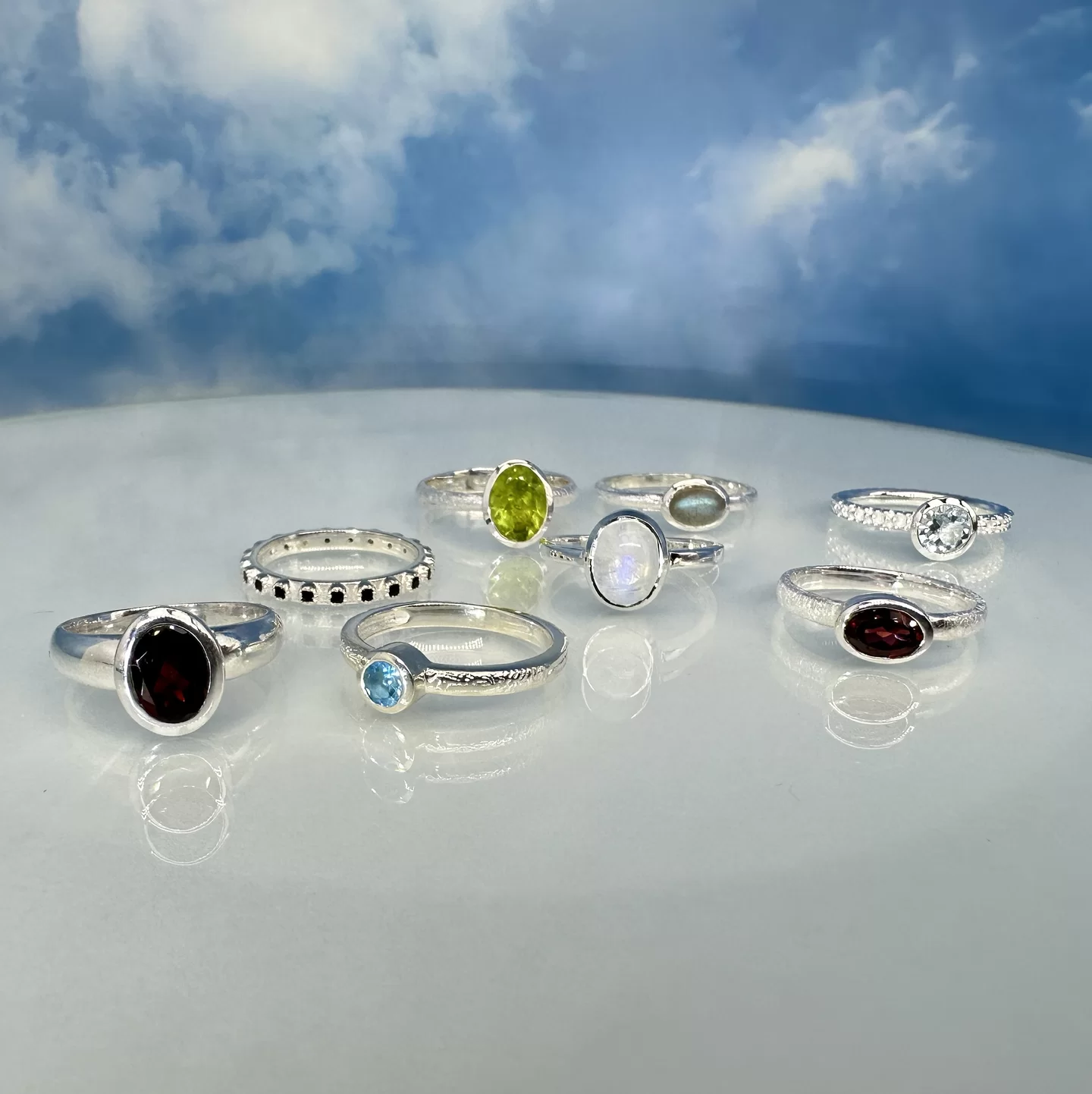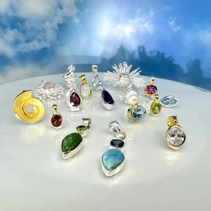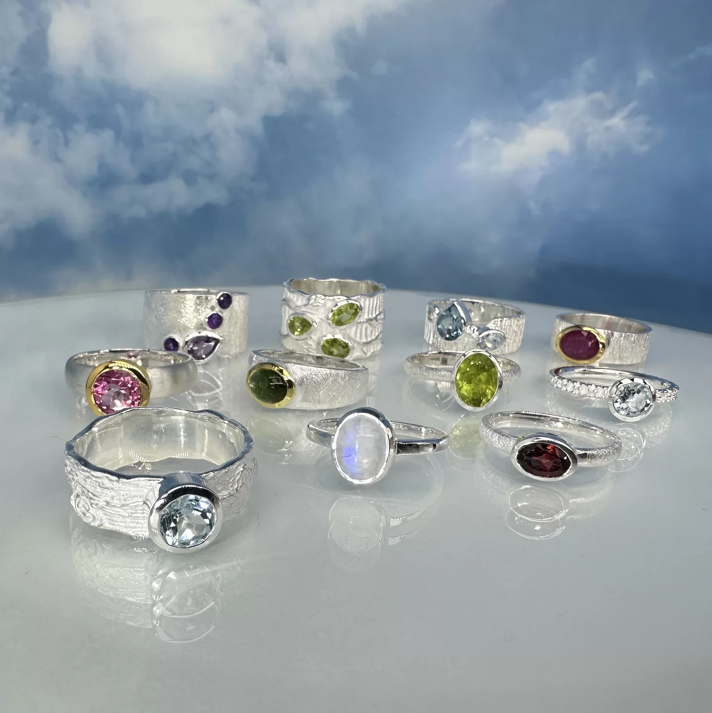 Ringen, Ohrringe, Ketten und Armbändern – jedes Stück ist einzigartig und aus 925 Silber gefertigt, teilweise vergoldet.