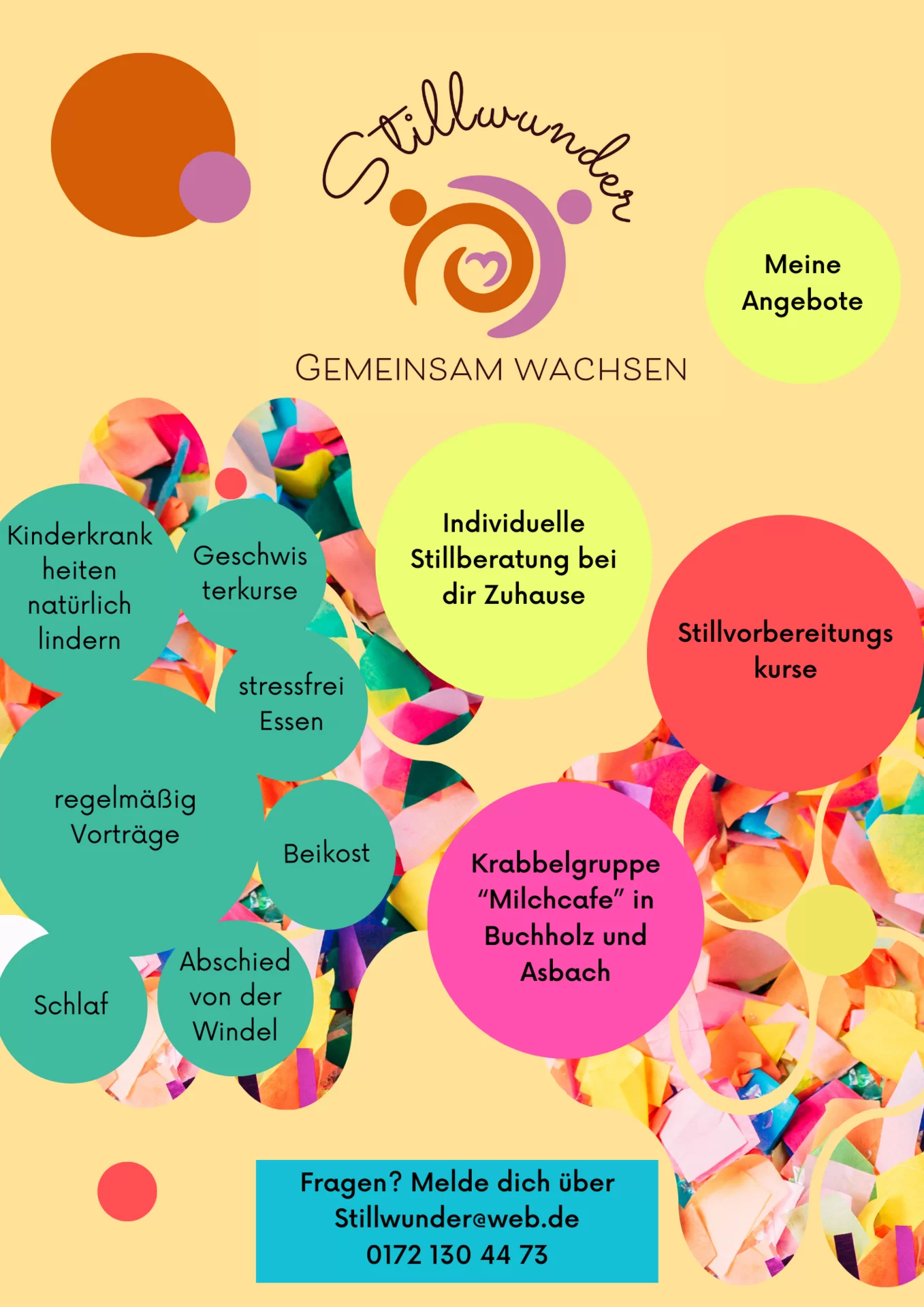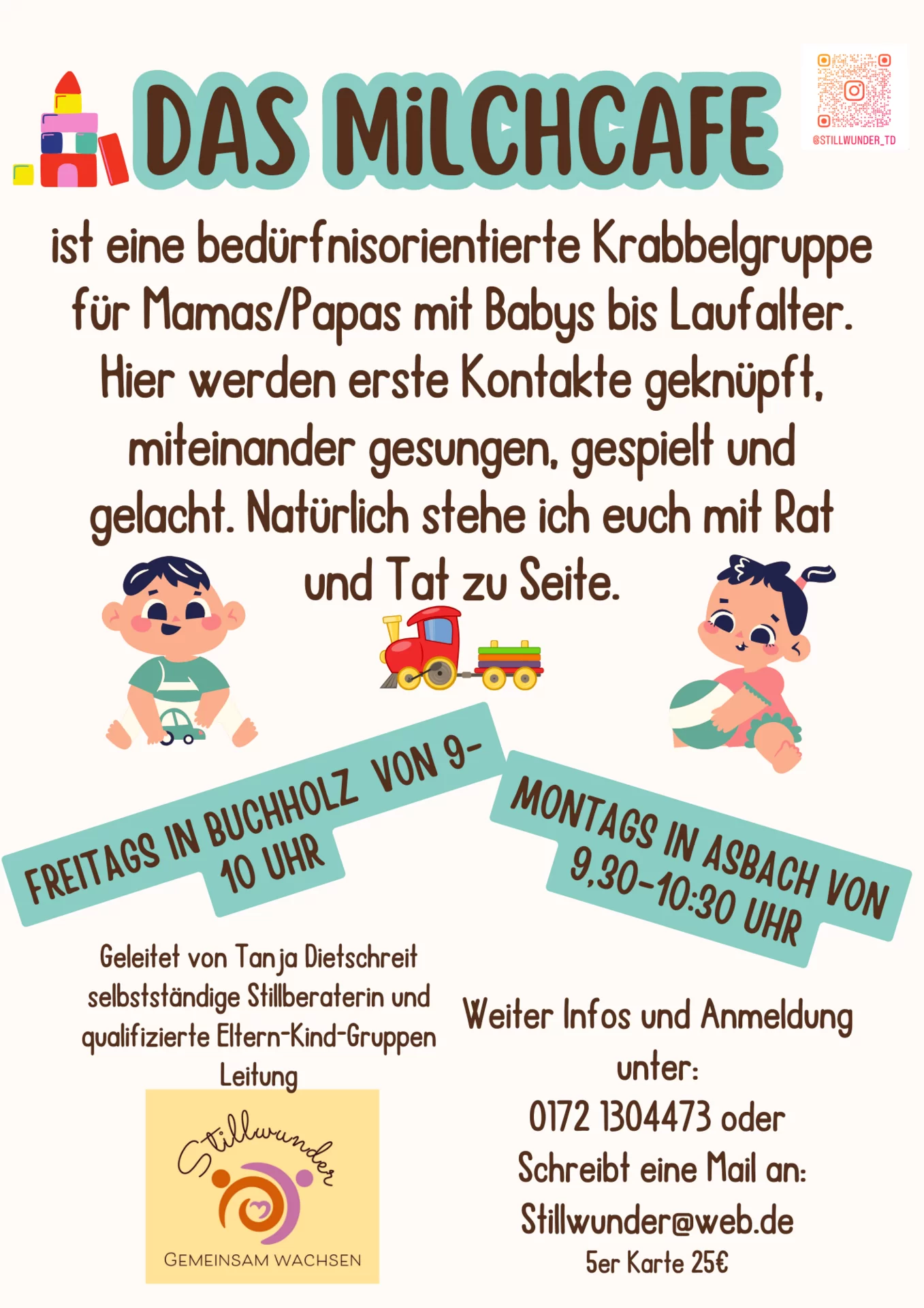Hallo schön das Du mich gefunden hast, Mein Name ist Tanja Dietschreit. Ich bin selber Mama von drei Kindern und arbeite als selbstständige Stillberaterin in und rund um 53567 Buchholz. Mit der Geburt meiner ersten Tochter lernte ich die Bedeutung des Stillens kennen. Das Stillen ist zwar das natürlichste der Welt aber nicht das Einfachste. So begann ich 2023 meine Ausbildung beim Europäischen Institut für Stillen und Laktation. Ich Freue ich darauf, euch das Wunder des Stillens zu zeigen, euch zu helfen und mit Rat und Tat zur Seite zu stehen. Außer der individuellen Stillberatungen bei dir Zuhause biete ich noch folgende Kurse an: Das Milchcafe Den Stillvorbereitungskurs Außerdem biete ich noch regelmäßig Vorträge unter andrem zu folgenden Themen an: