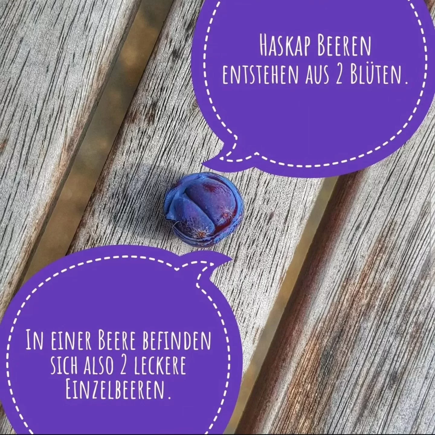 Der Haskap-Beere begegnete Lars Huf hingegen im Rahmen seiner agrarwissenschaftlichen Promotion in Japan. Die Beere ist dort seit langer Zeit bekannt und wird vor allem auf der Insel Hokkaido kultiviert und zu einer Vielzahl von Produkten verarbeitet. Der Geschmack der dunkelblauen Beeren erinnert an Himbeeren und Heidelbeeren. Im Gegensatz zu Kulturheidelbeeren sind Haskapbeeren komplett blauviolett durchgefärbt und haben einen besonders hohen Gehalt an Pflanzenfarbstoffen. Haskap kommt aus der Sprache der Ureinwohner Nordjapans und bedeutet „Beere der Langlebigkeit und guten Sehkraft“.