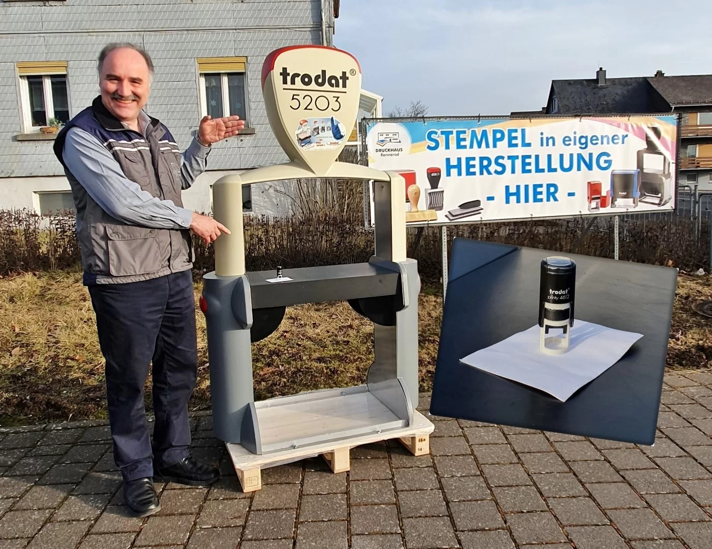 Als Handwerksbetrieb stellen wir unsere Stempel in eigener Produktion am Standort Rennerod her. Sonderbestellungen wie z.B. Ziffernbänderstempel mit speziellen Sonderzeichen oder Datumsstempel nach Kundenwunsch, lassen wir bei unseren Lieferanten, den führenden Herstellern wie Colop, Trodat und Reiner fertigen.